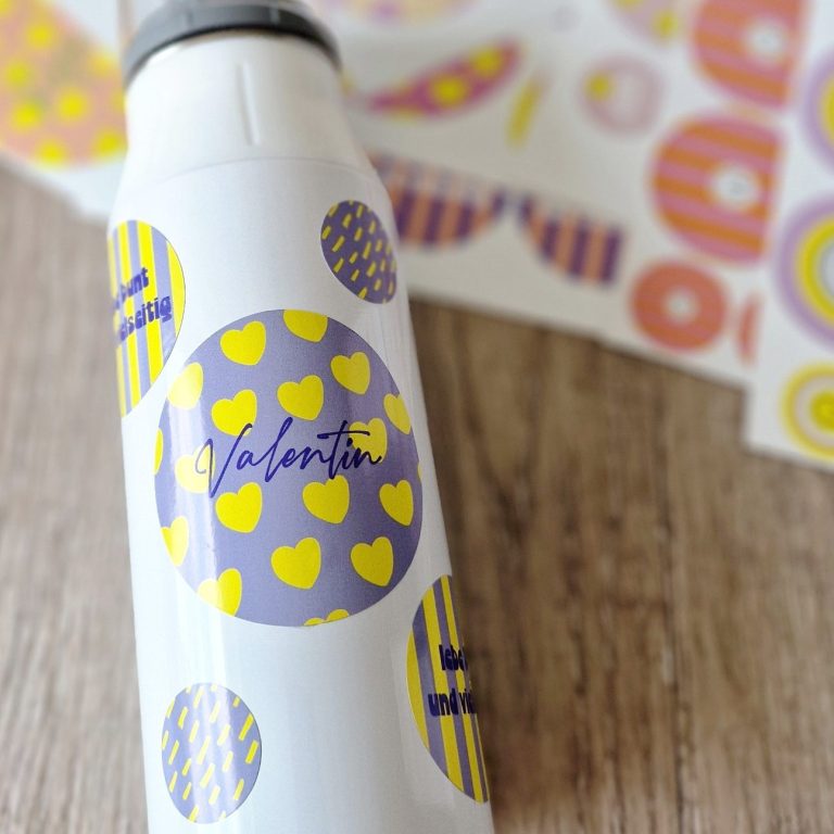 Im Kindergarten liegen schnell zwanzig gleiche Jacken auf einem Haufen. Beschrifte alles – Jacke, Schuhe, Brotdose, Trinkflasche, Wechselkleidung. Entweder mit Stickern, eingenähten Etiketten oder – unsere Empfehlung – gleich mit personalisierten Produkten die den Namen bereits drauf haben.